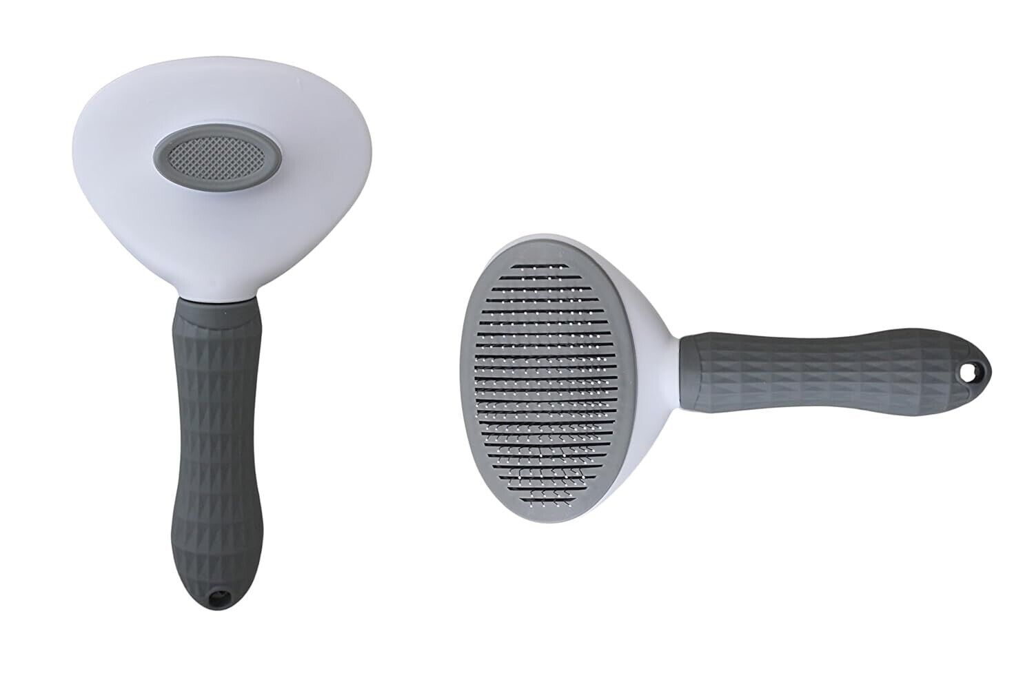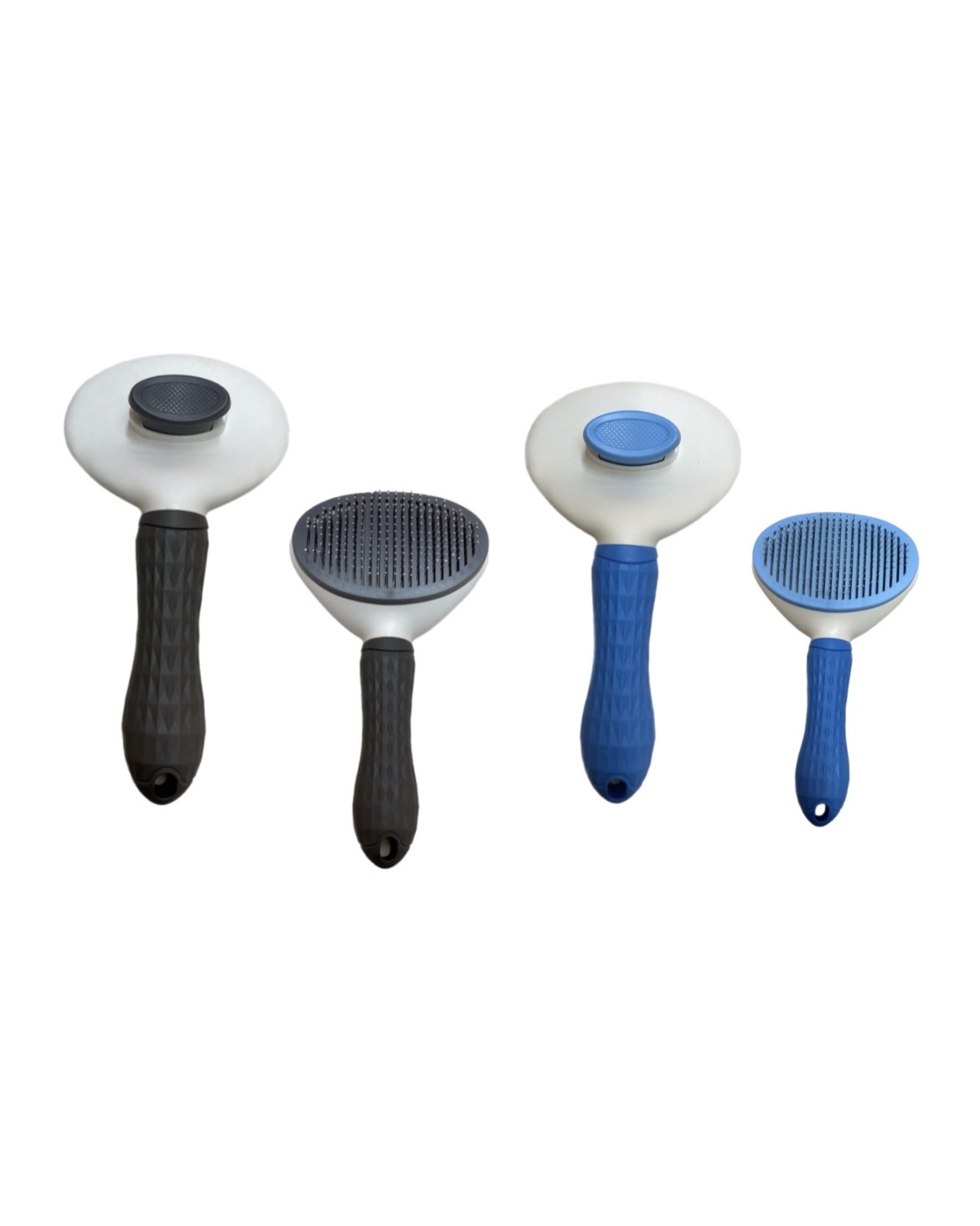 برس مو سگ وگربه همراه با دکمه تخلیه دار رنگ طوسی و ابی